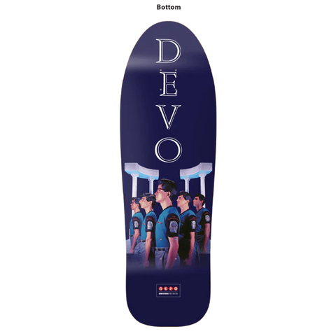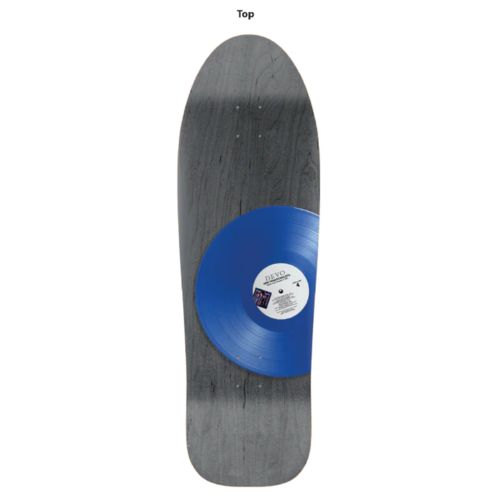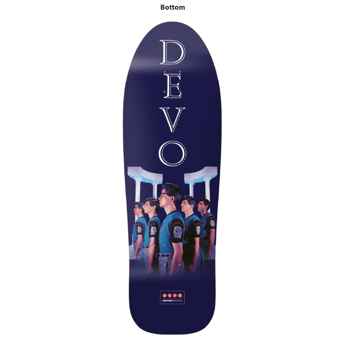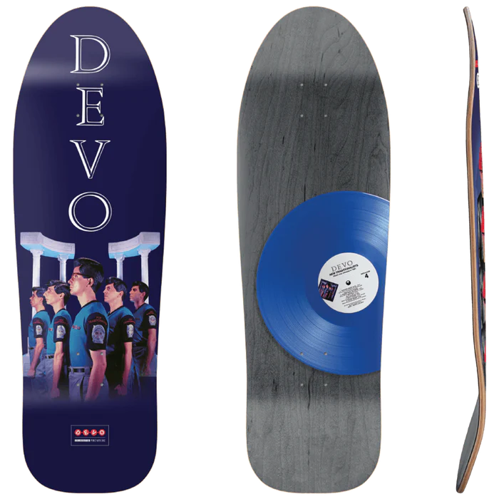 This “New Traditionalist” board is part of a 5 board series of DEVO’s 1st 5 Album Boards! in collaboration with ‘Perez With Saiz.’ This tribute board references DEVO’s 4th album, “New Traditionalist,” Released in 1981. The top graphic features the record label of songs and credits.