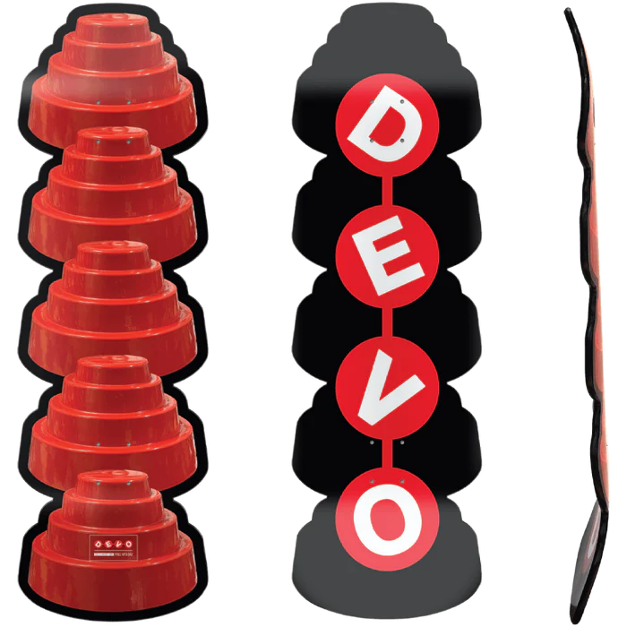 With DEVO being the 1st and quintessential skateboarding band, this crazy shaped 5 Energy Dome board is tribute to the 5 original members; Mark Mothersbaugh, Gerald Casale, Bob Mothersbaugh, Bob Casale and Alan Myers. This is 1st board of DEVO’s Collaboration ‘Perez With Saiz.’